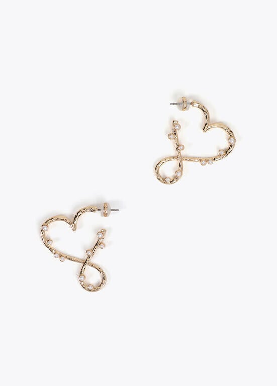 Arracades elegants amb disseny de cor infinit adornats amb delicades perletes. Elaborats en metall daurat amb tanca de rosca. Un complement sofisticat i modern per a qualsevol ocasió.